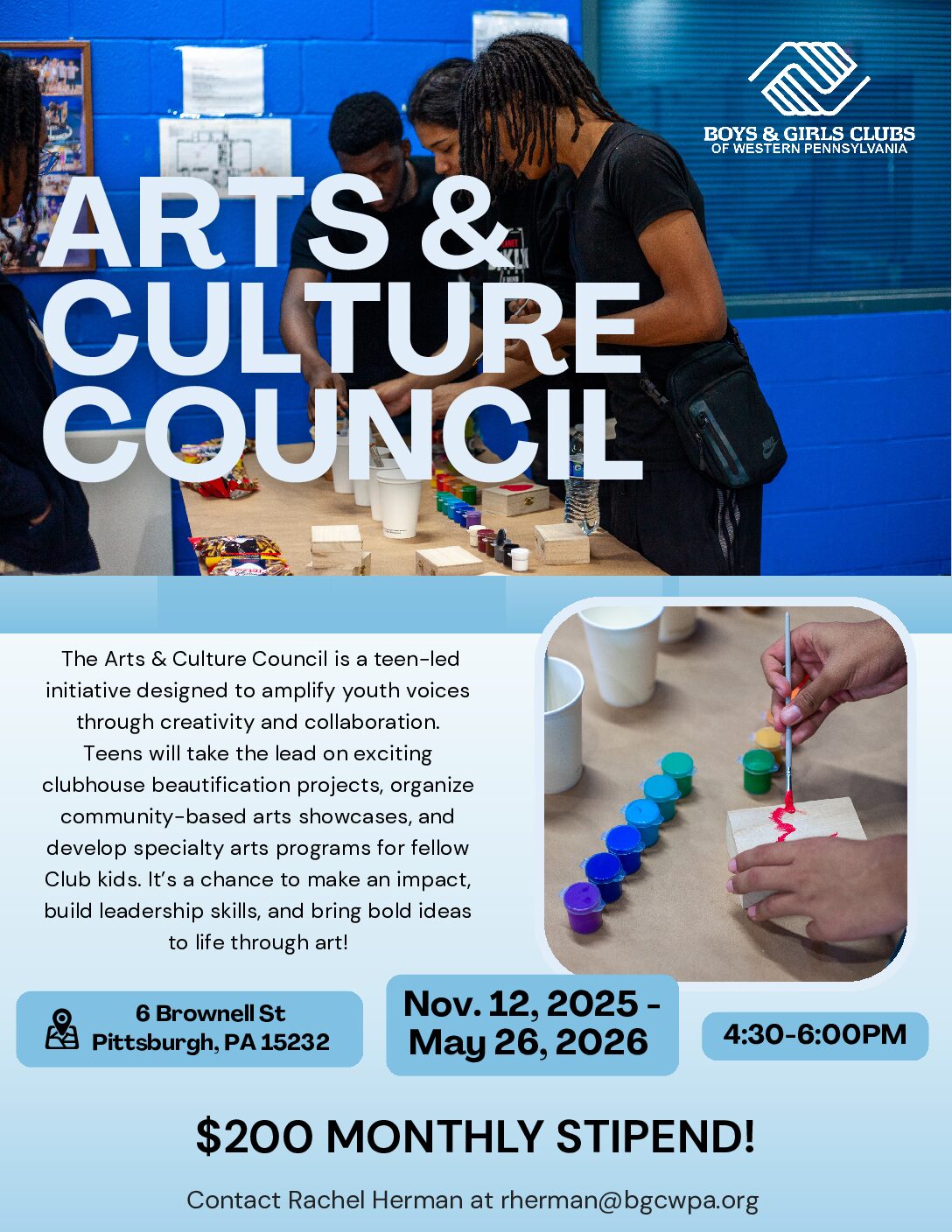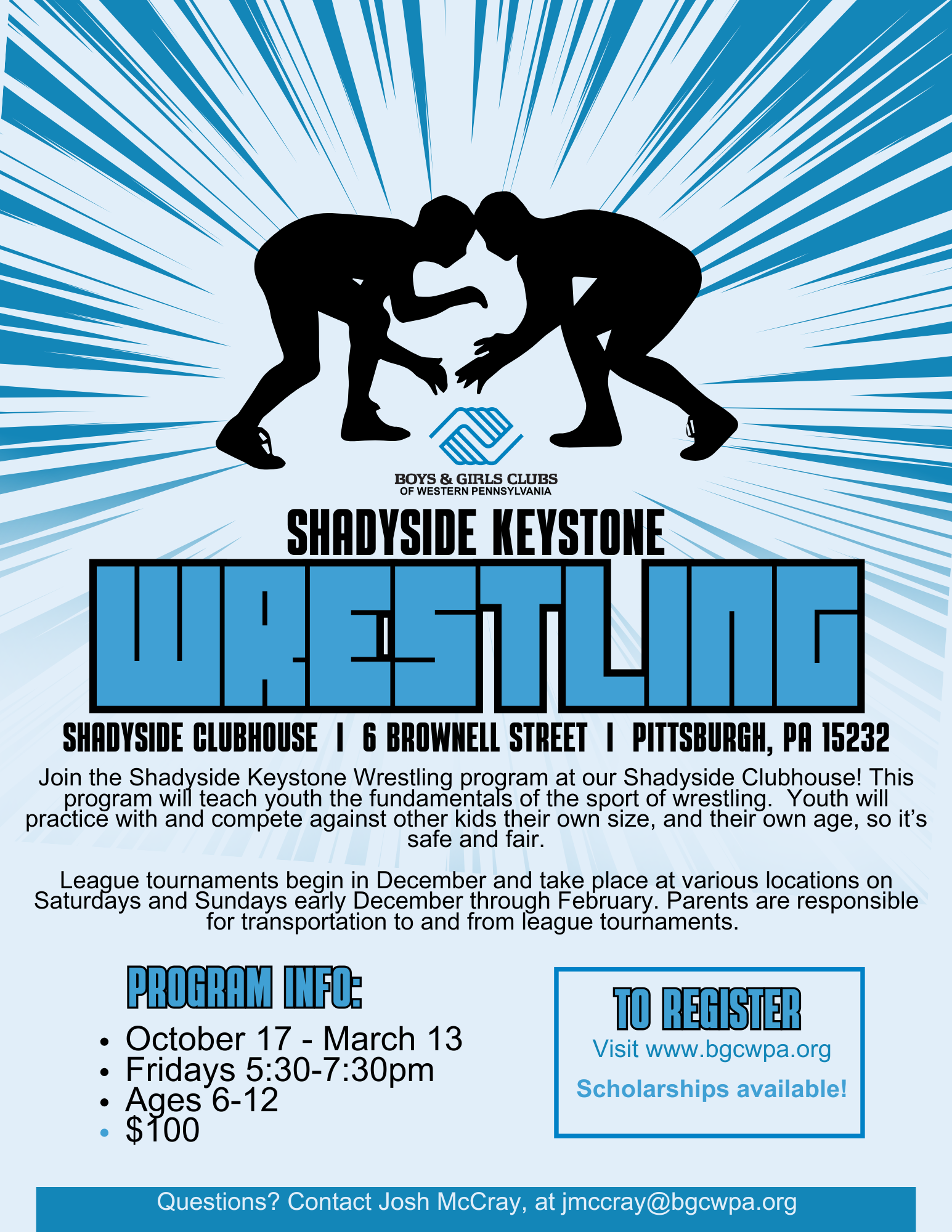 For more information or questions, please contact Josh McCray at jmccray@bgcwpa.org